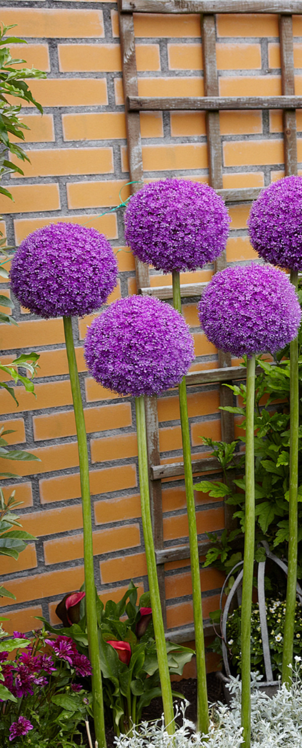 Alliums are low-maintenance, hardy bulbs that thrive in full sun and well-drained soil, blooming in late spring to early summer. Plant bulbs 3-4 times their diameter deep in autumn, spacing them 10-20 cm apart.